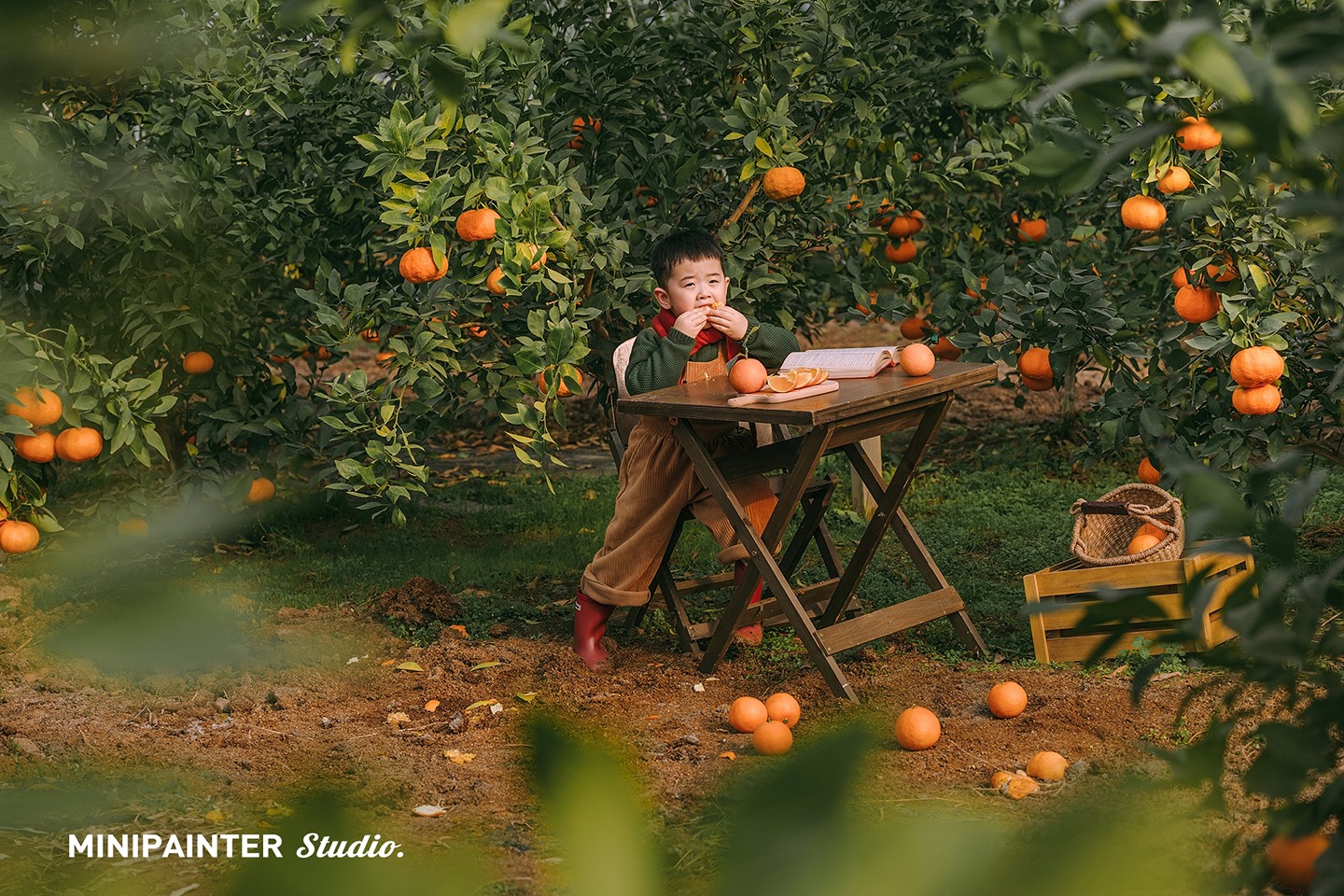套餐内包含5斤橘子,一组单人外景拍摄,精修12张,底片全送,一本8寸相册